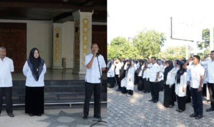 Banda Aceh — Sekretaris Daerah Aceh, Muhammad Nasir, memimpin apel pagi perdana pasca libur Hari Raya…